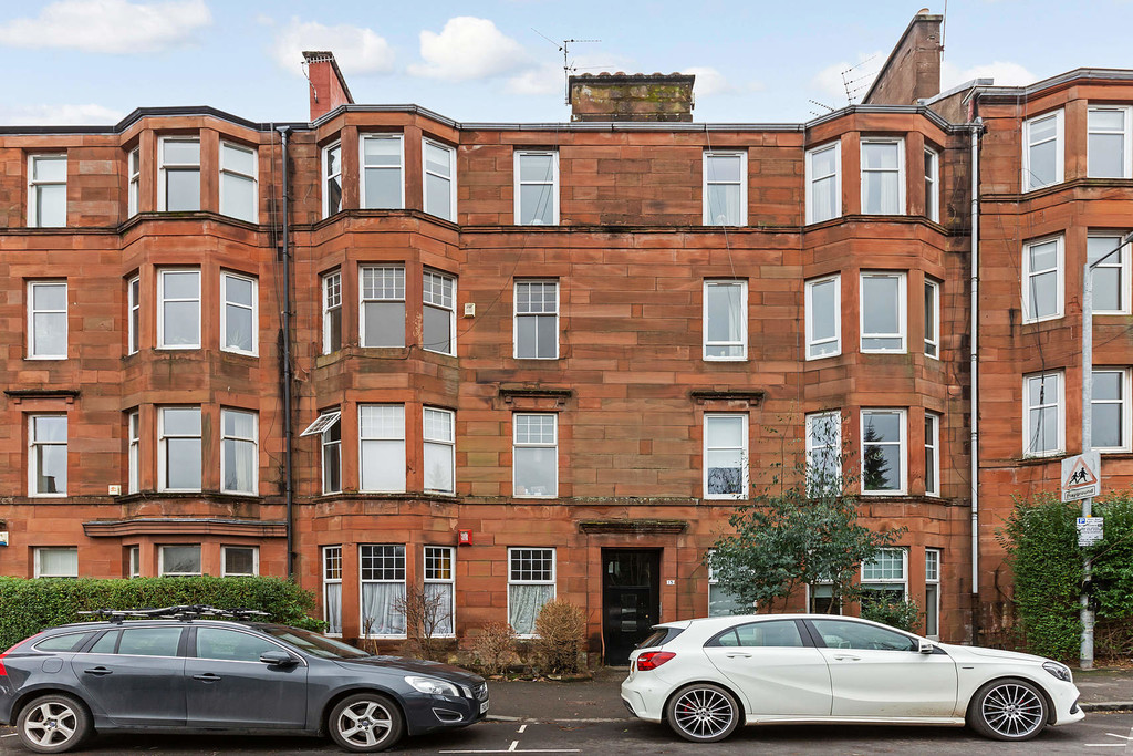 The building is entered via security entry and on-street parking permits are available for residents. The accommodation comprises; square reception hall with storage cupboard, bay window lounge with feature fireplace, fitted kitchen, 2 double bedrooms -with the bedroom to the rear being of a particularly good size with a second picture window and recess- and to complete the layout there is a bright and stylish 3 piece bathroom with over-bath shower, rear facing frosted window, traditional heated towel rail and a Glasgow pulley for drying clothes. The property enjoys superb natural light, period features including painted glass incorporated in the front door, gas central heating and communal gardens to the rear. This traditional 2 bedroom flat would make an excellent starter home for a couple or individual looking for a 2 bedroom, traditional property close to Byres Road. Equally this property presents as a solid buy to let investment with high yields and in a growth area.