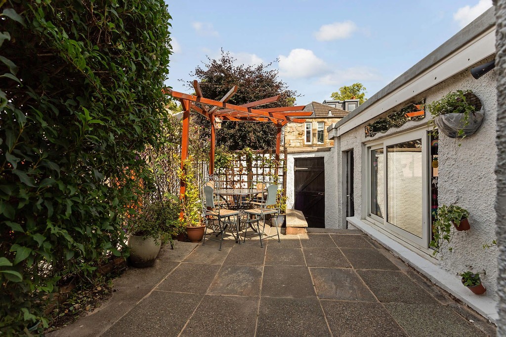 EXTENDED 4 BEDROOM RED SANDSTONE TERRACED VILLA WITH 2 PUBLIC ROOMS, ADDITIONAL WC, DINING KITCHEN, FLOORED LOFT AND GARAGE/STUDIO SET IN THE LEAFY WEST END CONSERVATION AREA OF BROOMHILL.