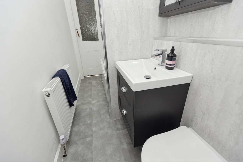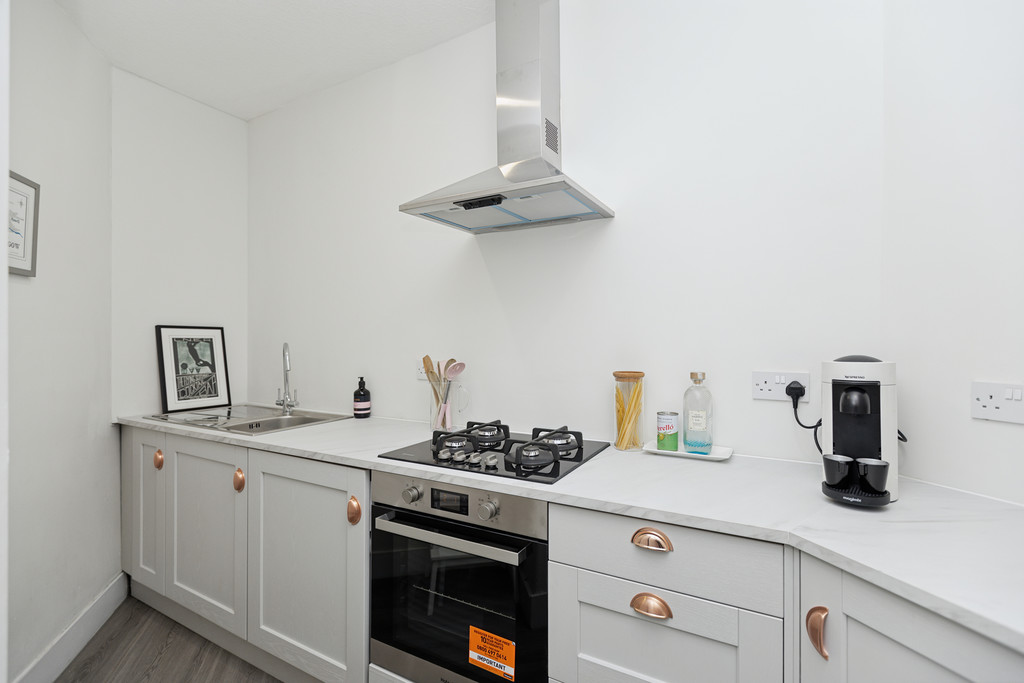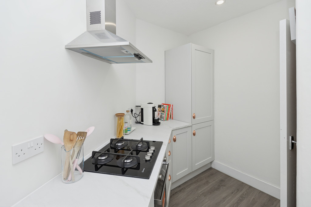Upon entering, you are welcomed by a bright and inviting hallway that leads to the heart of the home. The spacious living room boasts impressive bay windows, allowing natural light to flood the space. There is also room for a cosy dining area, and a walk-in cupboard provides excellent storage solutions. The newly fitted kitchen is sleek and contemporary, featuring integrated appliances and ceiling spotlights. The double bedroom offers a tranquil retreat with plenty of space for standalone furnishings, ensuring flexibility in layout and design. The modern bathroom is fitted with a three-piece suite which includes a luxurious waterfall shower. Additional benefits include gas central heating and double-glazed windows, ensuring year-round comfort and energy efficiency. The property is part of a well-maintained communal close and enjoys access to neatly kept rear gardens, providing a peaceful outdoor space.