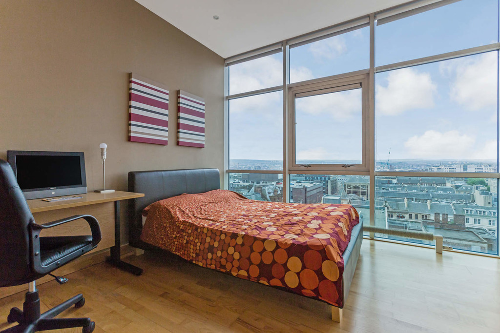 The accommodation comprises reception hall with storage, from the hall you access the loft style, open plan living space with floor to ceiling windows with views and an openness that is sure to impress viewers. The living space is circa 520 square feet, this aspect matched with the vast expanse of glass and elevated urban views makes for quite a special space. The en suite master bedroom is a fantastic size and enjoys the same views as well as a 4 piece bathroom arrangement, bedroom 2 is also a fine size and again benefits from the same open views. To complete the layout there is a smart 3 piece shower room. The windows are double glazed and there is a system of central heating. The view and the open plan living are the big hitters here and viewing will only give the true effect. This spacious loft style apartment will have broad appeal and specifically appeal to young professional individuals and couples and also to those looking for an investment or a second home in the city centre.