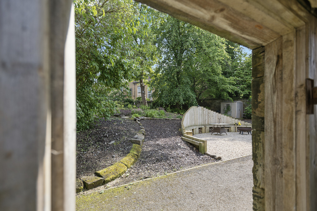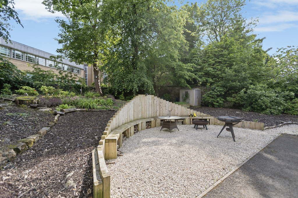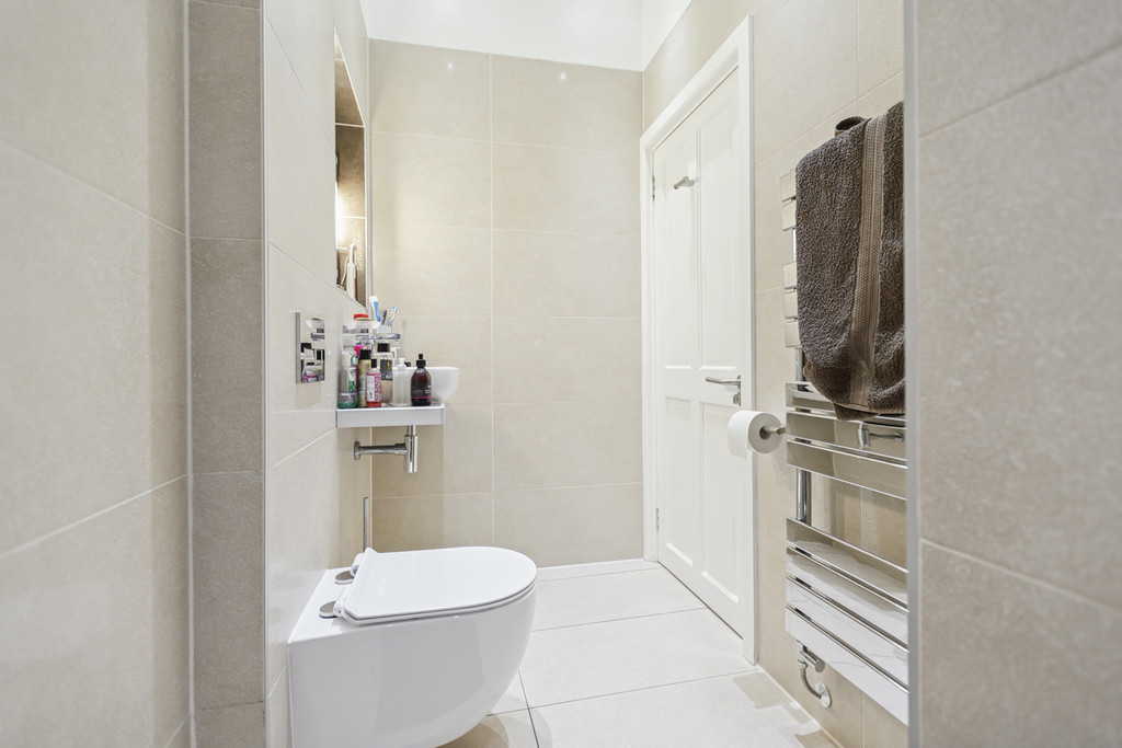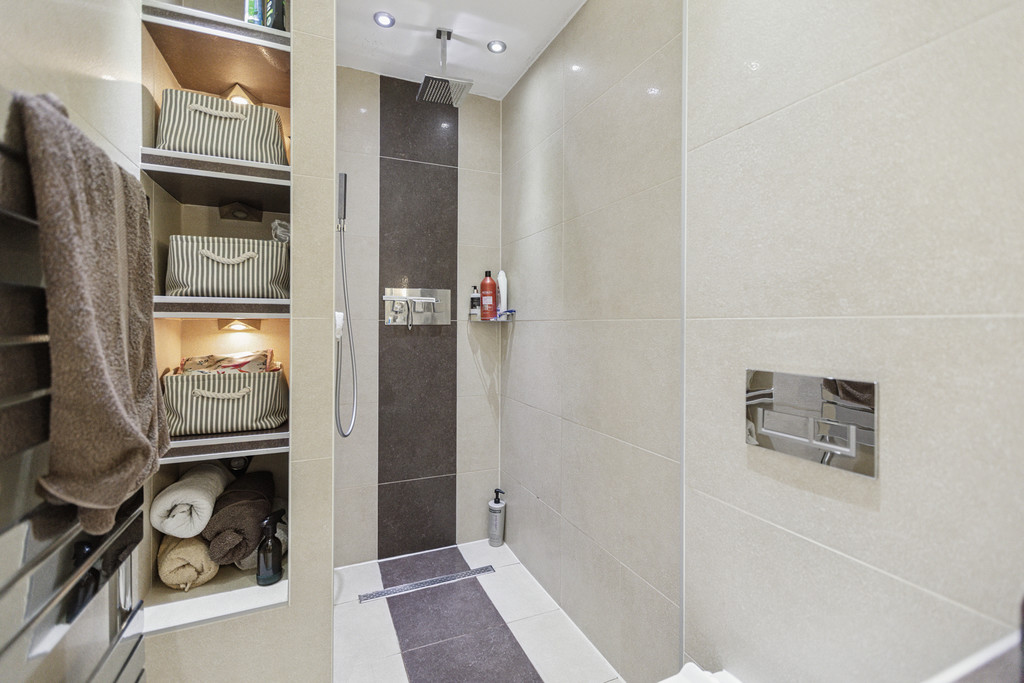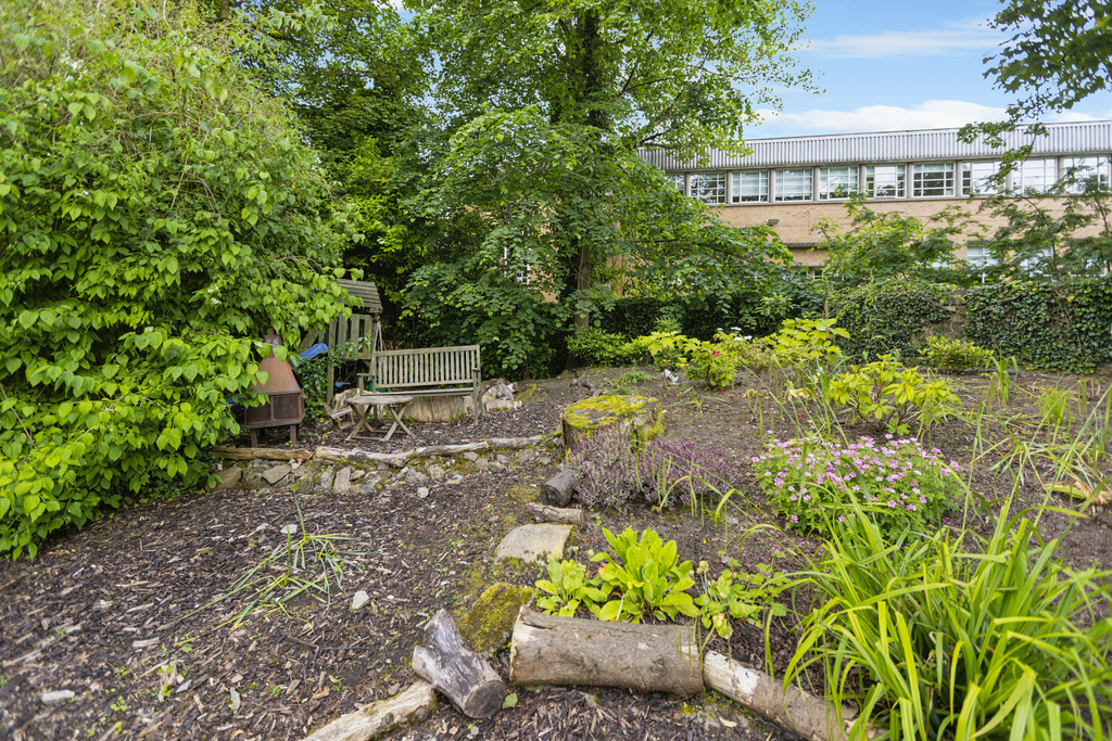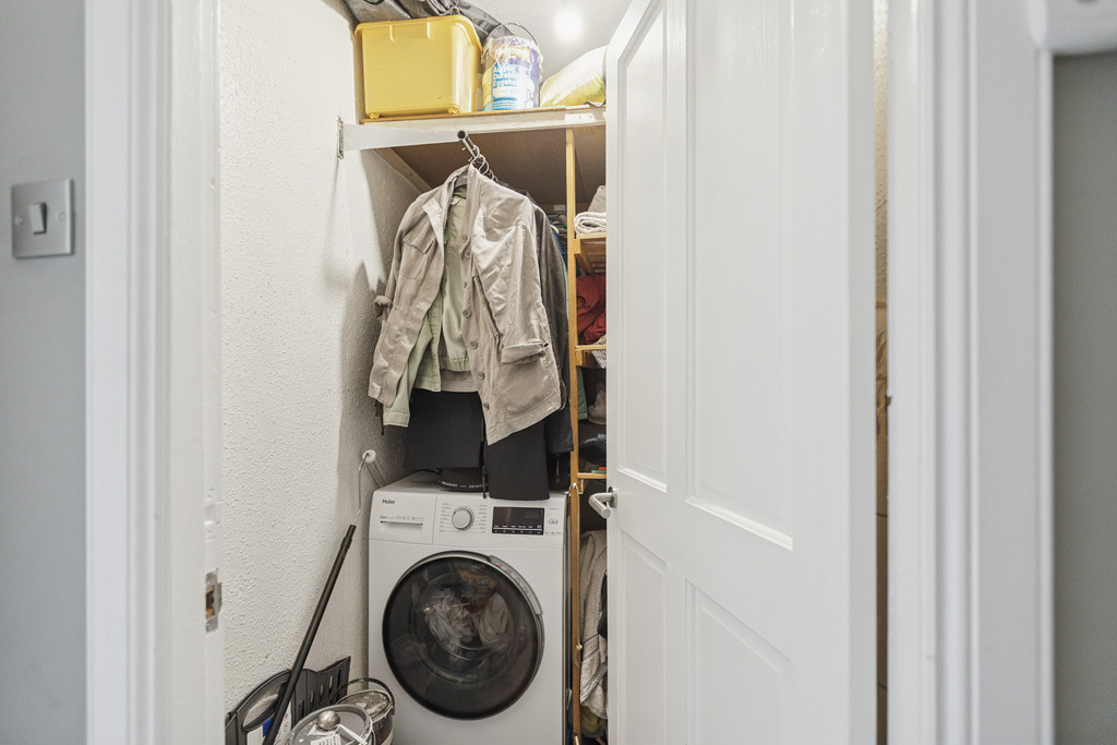 The master bedroom is spacious and tastefully finished, featuring elegant built-in wardrobes that enhance both functionality and style. It enjoys a peaceful outlook onto the rear garden grounds, providing a calm and quiet retreat. The second bedroom also overlooks the attractive shared gardens and includes a built-in wardrobe along with additional storage space, making it a highly versatile room suited to guests, a home office, or family members. The bathroom is luxuriously finished with a contemporary walk-in waterfall shower, offering a boutique hotel feel. Completing the interior is a practical utility area, thoughtfully positioned for everyday convenience.