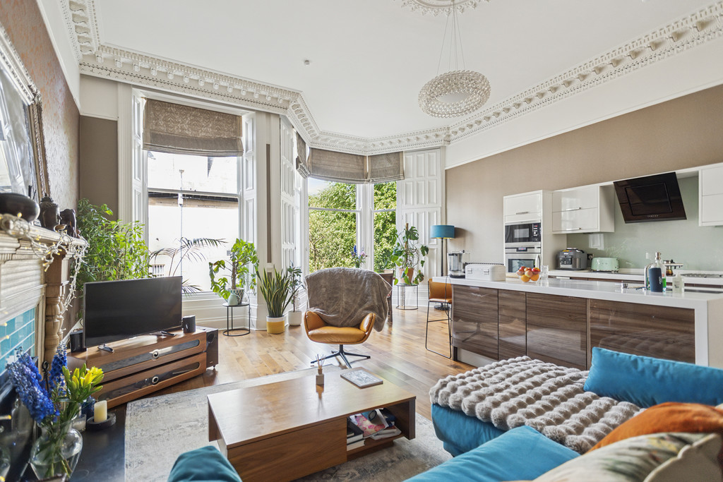 PROPERTY DESCRIPTION This beautifully presented two-bedroom apartment is set within a traditional blonde sandstone converted townhouse in the heart of Dowanhill, one of Glasgow's most sought-after West End neighbourhoods. Offering a seamless blend of period charm and contemporary living, the property benefits from well-maintained communal areas and access to generous shared garden grounds.
