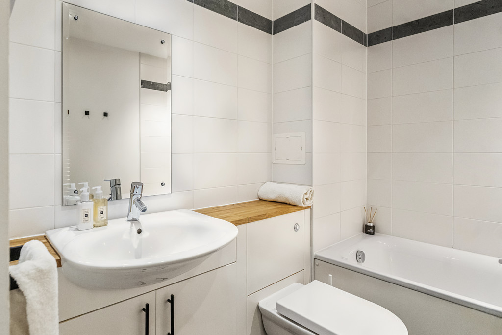 A bright and welcoming hallway sets the tone for the rest of the home. The open-plan living room makes the most of the apartment's elevated position with its impressive outlook, while the adjoining fully-integrated kitchen is fitted with high-quality appliances and enhanced by a sleek breakfast bar. Thoughtfully designed for both everyday use and entertaining, this space is particularly appealing to food enthusiasts who value a well-equipped modern kitchen. The master bedroom is generously proportioned, featuring built-in storage, views of the Kilpatrick Hills, and a luxurious ensuite complete with a bath and a walk-in shower. The second bedroom is also well-sized, offering excellent versatility as a child's room, guest bedroom, or home office, and benefits from further storage. The main bathroom mirrors the same level of finish with a bath, creating a spa-like retreat. The apartment also benefits from a generously sized utility room, large enough to house both a washing machine and tumble dryer, as well as providing an addition to the already ample storage. The property further benefits from private underground parking, a secure door-entry system, and two lifts within the building, ensuring comfort and practicality for everyday living.