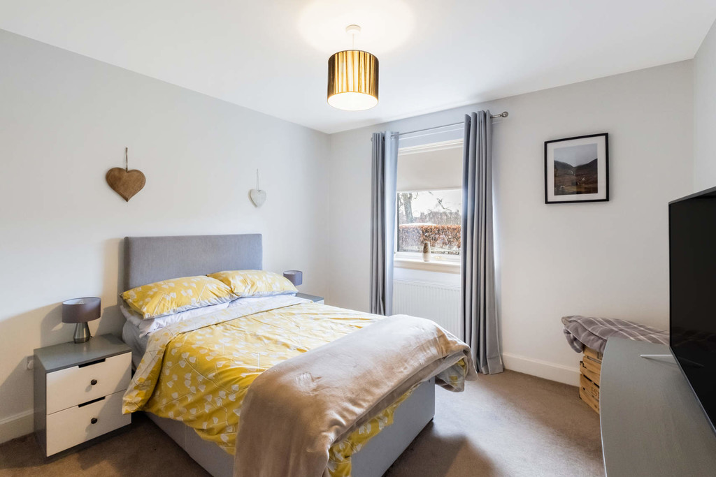 The accommodation comprises; reception hall with 2 storage cupboards, spacious lounge with feature, recessed ceiling and dimmable lights, box bay window which is ideal for a dining table and open westerly aspects. The kitchen is modern and integrated with views onto the drying green, there are 2 excellent double bedrooms, both with fitted storage and to complete the layout there is a modern 3 piece bathroom with over-bath shower and opaque window to the rear.