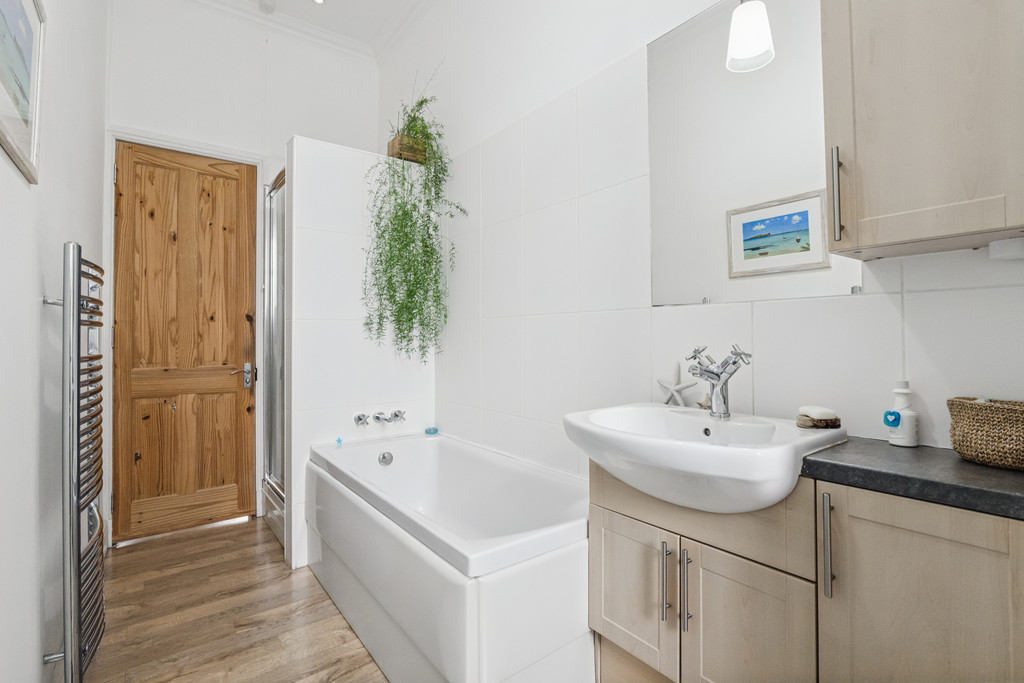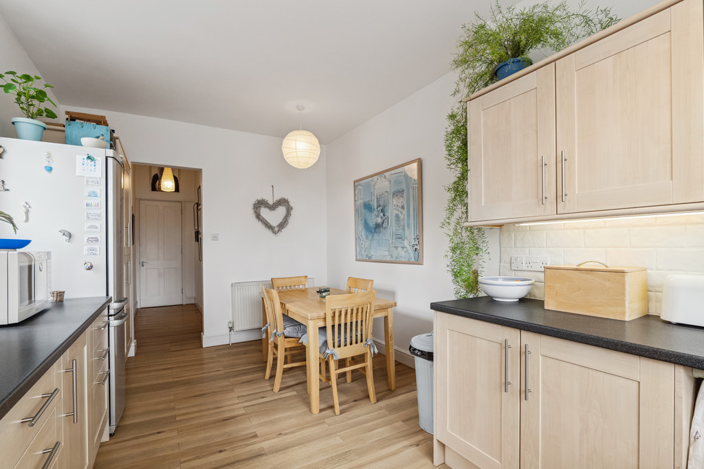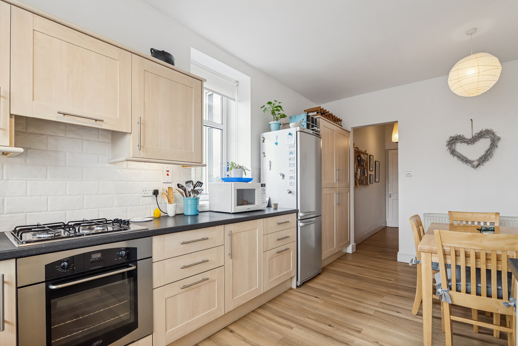 Upon entering the property, you are welcomed by a warm and inviting hallway, providing a tasteful introduction to the home's blend of period features and modern comfort. The bright and generously proportioned living room is a standout space, boasting stunning bay windows that flood the room with natural light. An elegant feature fireplace serves as a striking focal point, and the room is enhanced further by intricate cornicing. The kitchen/diner is a highly practical and social space, offering ample cabinetry and work surfaces. Fully equipped with all necessary appliances, this room also benefits from generous proportions that comfortably accommodate a dining area - ideal for both everyday meals and entertaining. The principal bedroom is impressively spacious, featuring tall windows that provide excellent natural light. There is significant room for standalone furnishings, offering flexibility in layout and design. The second bedroom is also generously sized and includes excellent built-in storage, making it perfect for a wide array of uses. The bathroom is finished to a high standard and offers practicality, featuring a walk-in shower and a standalone bath, ideal for relaxing at the end of the day. Additional benefits include efficient gas central heating and access to well-maintained communal garden grounds, which offers a peaceful retreat during the summer months.