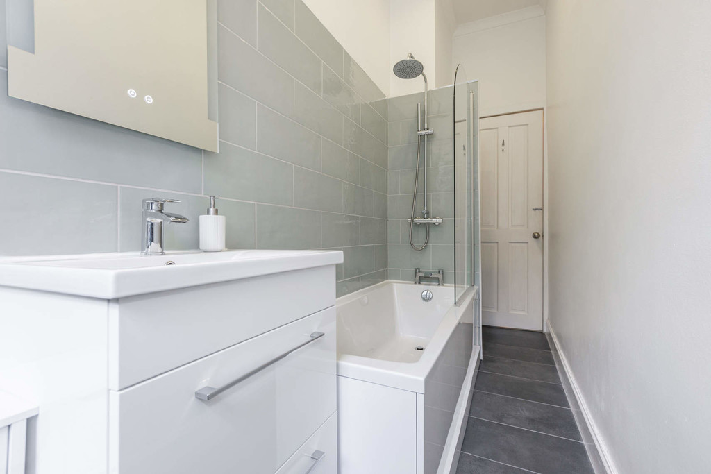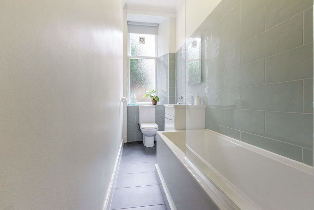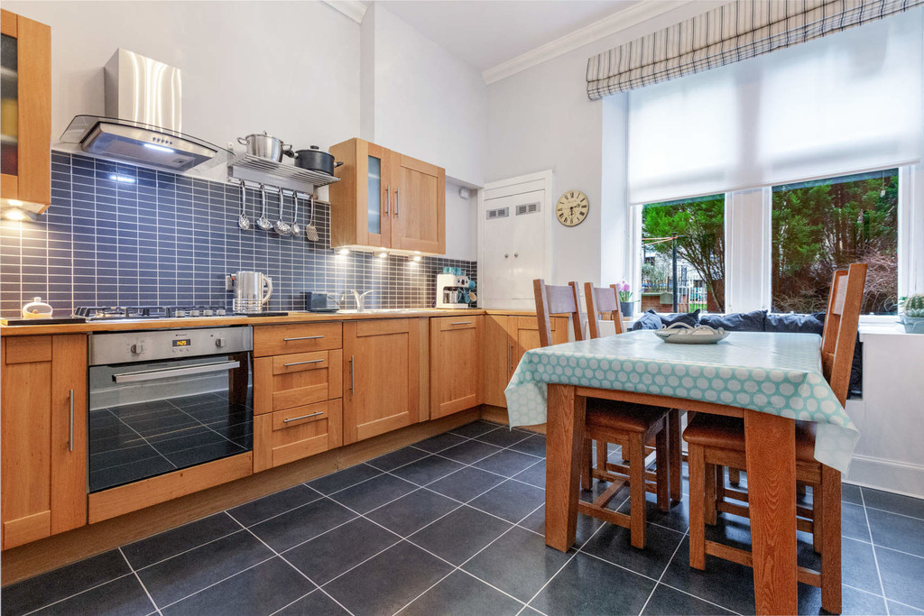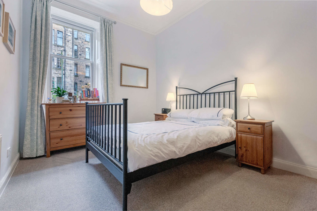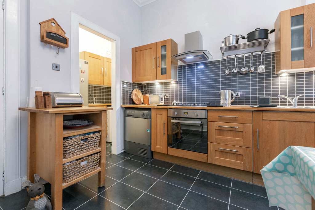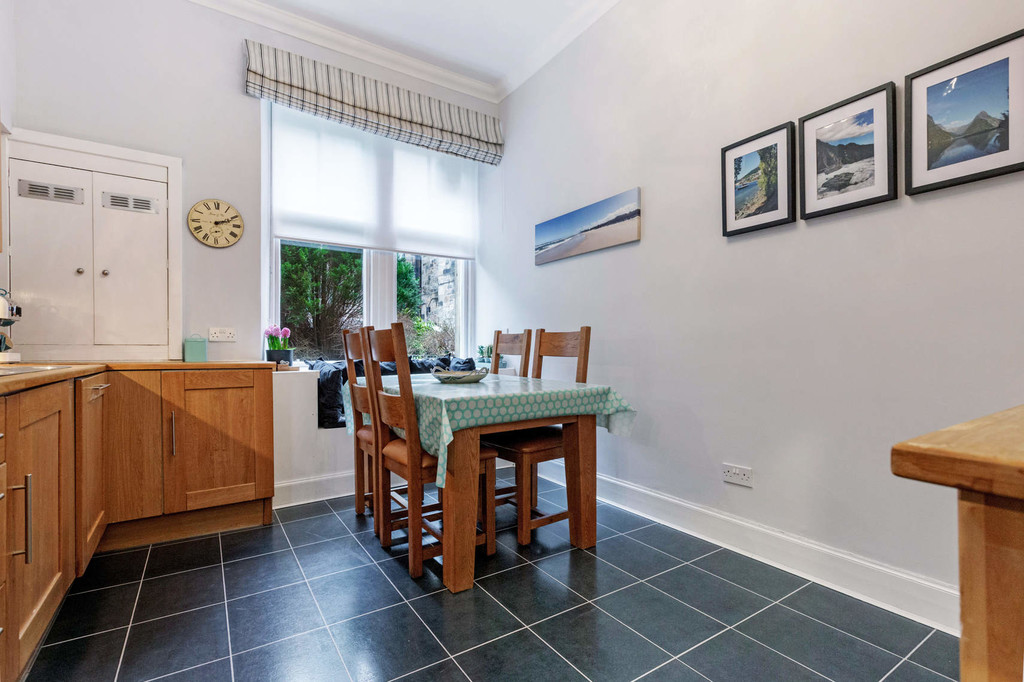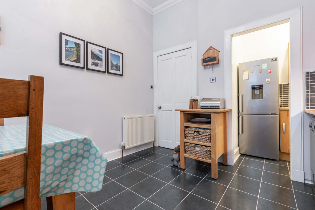 This traditional tenement is very well-maintained benefitting from a recently replaced roof, traditional tiled close and well-tended rear gardens. The building is set in an elevated position and there is a security entry system. The accommodation comprises; square reception hall with walk-in storage cupboard, formal bay window lounge with feature fireplace and fitted walk-in storage cupboard, fitted dining kitchen which benefits from a utility room, 2 excellent double bedrooms and to complete the layout there is a bright and stylish 3 piece bathroom. The property has gas central heating, period sash & case windows, private west facing outdoor seating area and residents permit parking.