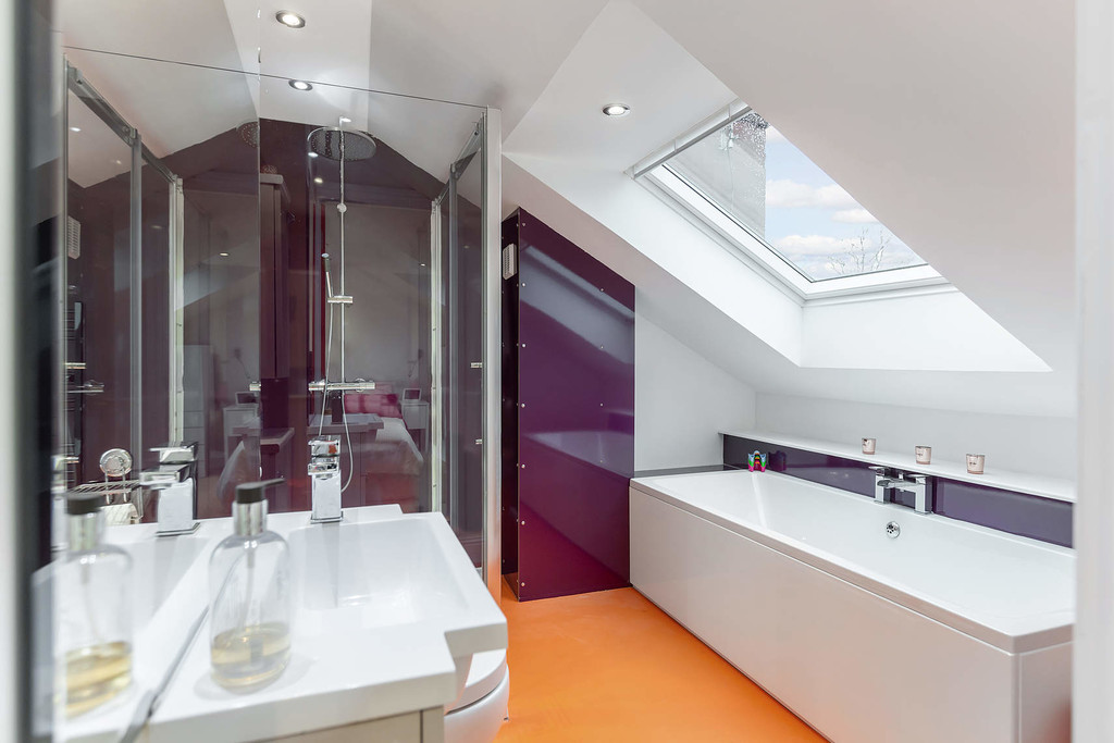 The accommodation comprises; reception hall, 30ft open plan lounge, dining and kitchen space with high ceilings and roof lights creating a very special and surprisingly spacious living area. There are 2 double bedrooms and a modern 3 piece shower room on the first floor and on the upper floor there is a fantastic master suite which enjoys superb natural light and a bright, 4 piece en suite bathroom with separate shower. To complete the layout there is a utility room off the kitchen with a main door to the rear which gives access to the private garden, parking area and garden room. The property benefits from gas central heating and double glazing and is bright and modern throughout.