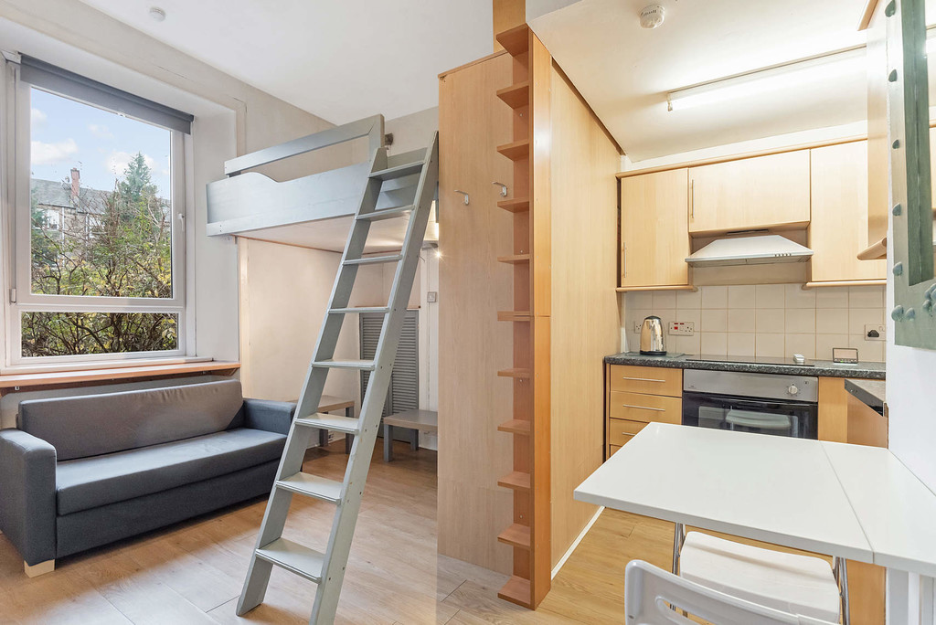SUPER CENTRAL ELEVATED GROUND FLOOR STUDIO APARTMENT WITH MEZZANINE BED. SET WITHIN A TRADITIONAL RED SANDSTONE TENEMENT JUST OFF BYRES ROAD AND ADJACENT TO THE NEW £1bn GLASGOW UNIVERSITY CAMPUS (website: campusdevelopment.co.uk)
