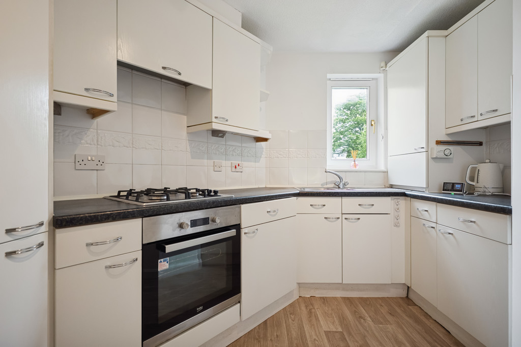 Upon entering, you are welcomed by a bright and inviting hallway that sets the tone for the rest of the home. The spacious living room is a standout feature, with twin windows allowing natural light to flood the space throughout the day. A charming small fireplace adds a cosy touch to this versatile room, perfect for relaxing or entertaining guests. The fully integrated kitchen is thoughtfully arranged and boasts ample storage solutions. The master bedroom offers a peaceful retreat with built-in sliding wardrobes providing excellent storage, and a three-piece ensuite for added comfort. The second bedroom is also of good size and includes additional built-in storage, ideal for guests or home office use. Completing the interior is a well-appointed main bathroom featuring a standalone bath, perfect for unwinding after a long day. Additional benefits include gas central heating, double-glazed windows throughout, private garage and residents' parking, ensuring year-round comfort and convenience.