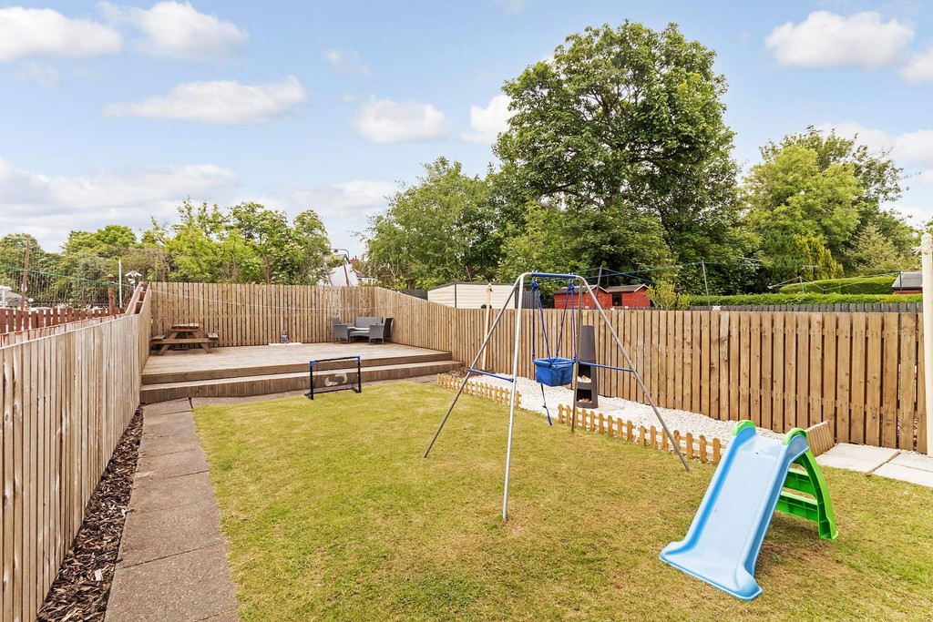 The accommodation comprises; vestibule hall with access to the rear garden, front door to the reception hall, fantastic bay window lounge with feature fireplace and space to dine, modern fitted kitchen with breakfast bar and to complete the lower floor there is a 3 piece bathroom with over-bath shower and under-stair storage. On the upper floor there is a spacious and bright open landing with storage and access to the loft. The master bedroom is a fantastic size and boasts a large bay window and there are 2 further excellent double bedrooms. The property has gas central heating and double glazing and the exterior has been re-insulated and rendered for efficiency and aesthetics. There are private gardens to the front and rear with the rear gardens enjoying a superb sun deck, lawn, shed and additional paved and chipped areas.