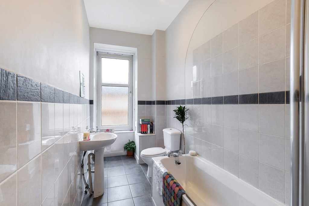 The accommodation comprises; spacious reception hall with storage, bay window lounge with large walk in cupboard, recently installed dining kitchen with office recess, 2 excellent double bedrooms and to complete the layout there is a bright and modern 3 piece bathroom with over-bath shower. The property has gas central heating and double glazing and there are residents parking permits available on-street. To the rear of the property there is a west facing garden space with drying green.
