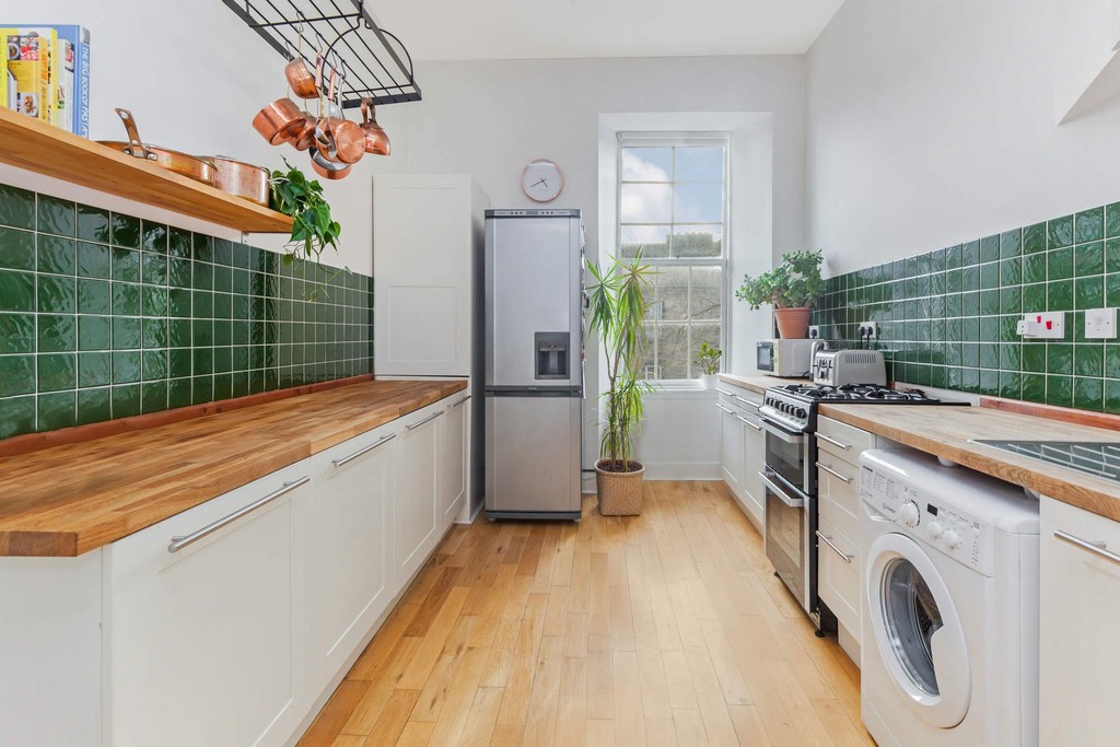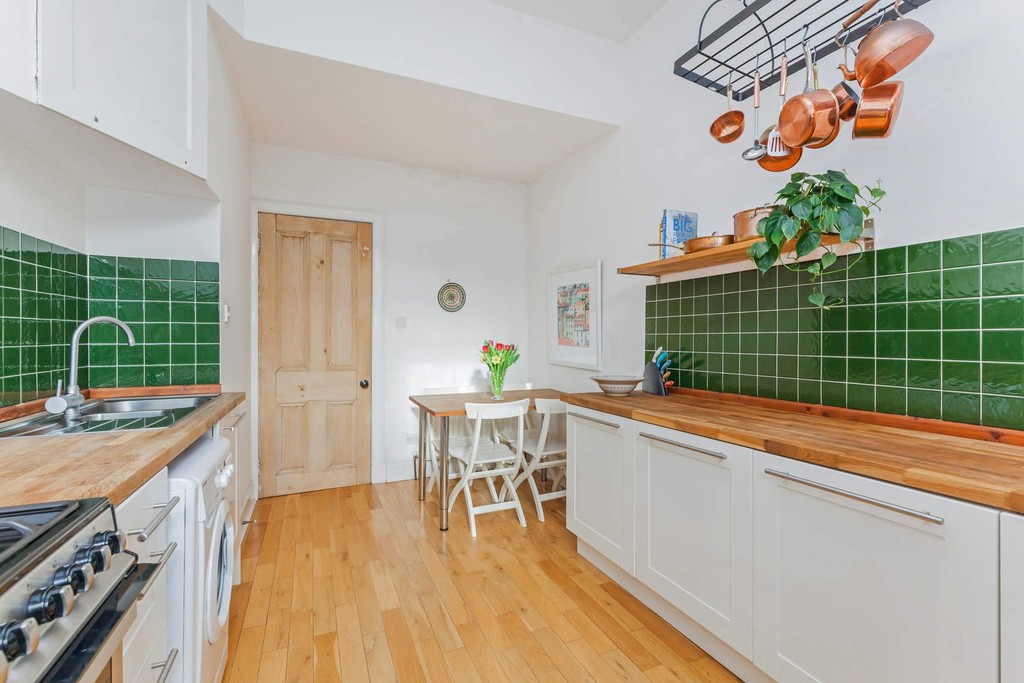 The accommodation comprises; reception hall with 2 walk-in wardrobes, spacious lounge with period features and feature fireplace, bright dining kitchen which enjoys morning sun, 2 generous double bedrooms and to complete the layout there is a 3 piece bathroom with over-bath shower. There are refurbished, original floorboards in the lounge and an engineered floor throughout the hall, dining kitchen and both bedrooms. The property has gas central heating, beautifully refurbished sash and case windows, the building has security entry and residents parking permits are available.